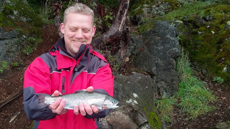 Long Lake via Salal/Woodhaven Dr access trail Drive slowly along Salal Dr which turns into Woodhaven Dr. There are a couple of access spots with short trails to Long Lake. There’s a good rock to cast off of where Jimmy landed his first catch of the Season! – S ____ Is the rainbow trout real …