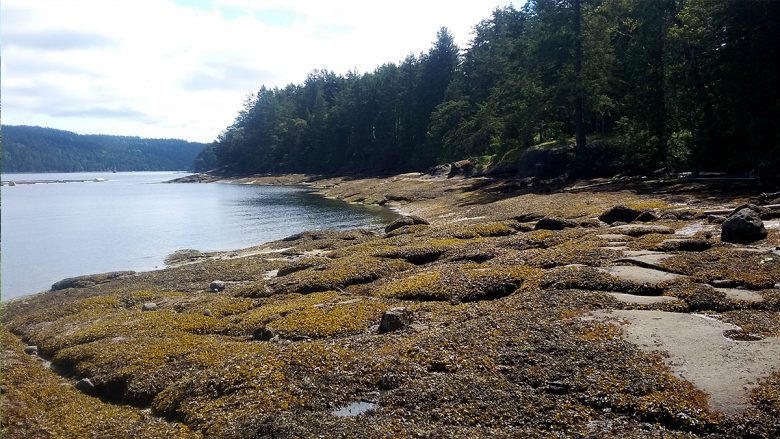 Cable Bay Trail is a 2km trail descending through the forest that ends at sandstone beach overlooking Gabriola Island. The official trail ends at the bridge, but you can pick up another trail that follows the shoreline along Stewart Channel.