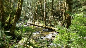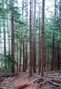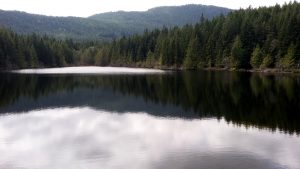 The start of this loop is along the Holland Creek Trail (see earlier post) and veers off into a steep 1.5km steep climb to Heart Lake. This is a good workout! When you start the loop, veer LEFT. It will be much easier on your head and (later) your knees, to climb the steep forest trail to the Lake, rather than starting in the other direction and climbing the looooong logging road. It will make sense when you’re descending.